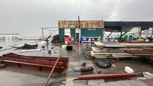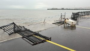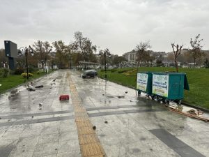 Gece saatlerinde şiddetli fırtına nedeniyle denizde dalgaların boyu 10 metreye ulaştı. Dalgalar, Sahil dolgu alanda bulunan seyyar tezgahları ve bir çay bahçesini kullanılamaz hale getirdi. Şiddetli rüzgarın etkisi ile çocuk parklarına uçan seyyar tezgahlar ve soğutucular Büyükşehir Belediyesi ekipleri tarafından toplanılıyor. Fırtına nedeniyle deniz kenarında bulunan bir çay bahçesi kullanılamaz hale geldi. Mutfağı ve duvarları yıkılan iş yerinde maddi hasar oluştu. Konuyla ilgili açıklama yapan iş yerinde çalışan Sıtkı Karahan; ‘’Vallahi sıkıntılı işte görüyorsunuz, her sene böyle bir şey oluyor. İki gündür kasırga, fırtına, dalga. Dalgaların boyu yaklaşık 10 metreye kadar çıktı yani. Zararı görüyorsunuz zaten, Allah yardımcımız olsun ne diyelim, Allah daha felaketinden korusun en azından can kaybımız yok, maddi zararı bir şekilde karşılamaya çalışacağız’’ dedi.